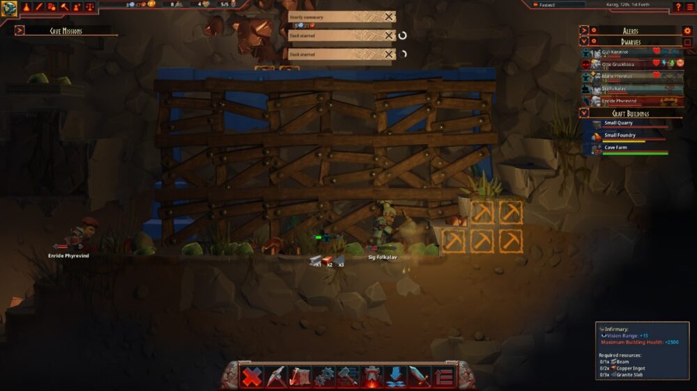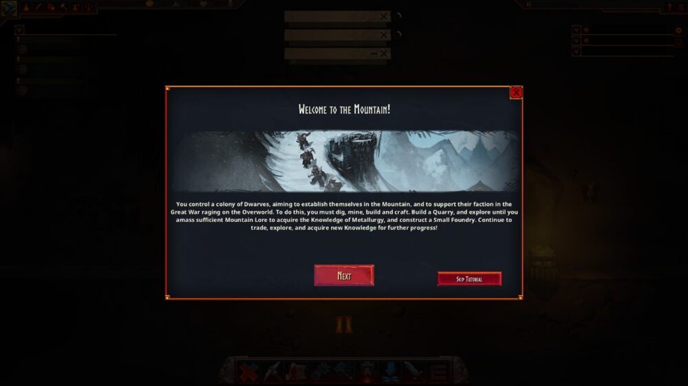 Hammerting’s onboarding process is rather lacklustre. Once you’ve selected some basic game options such as the difficulty and mountain size as well as named your colony, you will be thrown straight into the deep end, or deep cave rather. Once in the cave, you will be inundated with an immense amount of tutorial pop-ups and messages which are supposed to get you up to speed with what you have to do. These messages explain the game’s mechanics but unfortunately, this entire process is extremely convoluted and not at all well-paced.