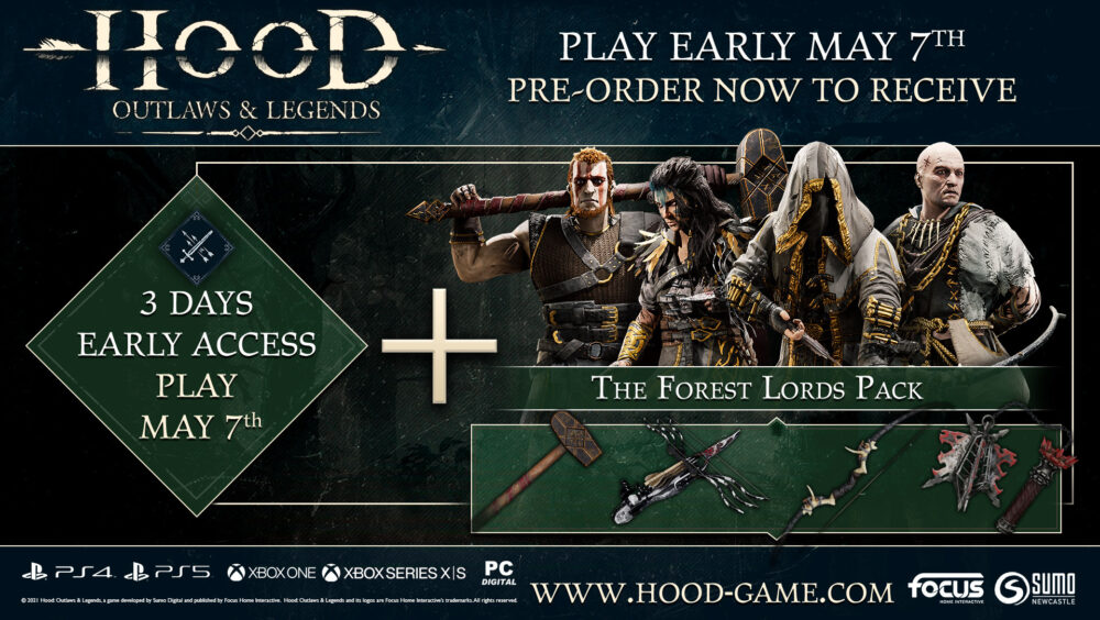 Hood: Outlaws and Legends, the multiplayer PvPvE heist game from Sumo Digital, comes to PlayStation 5, Xbox Series X|S, PlayStation 4, Xbox One, and PC! Pre-order players will get exclusive bonuses and early access to the game from May 7 – three days before the official release on May 10! Gather your team of Outlaws and attempt to steal treasure from an oppressive government in a dark and violent medieval world. Get a first look at Hood’s intense gameplay in today’s Release Date Reveal Trailer, first aired during The Game Awards.
