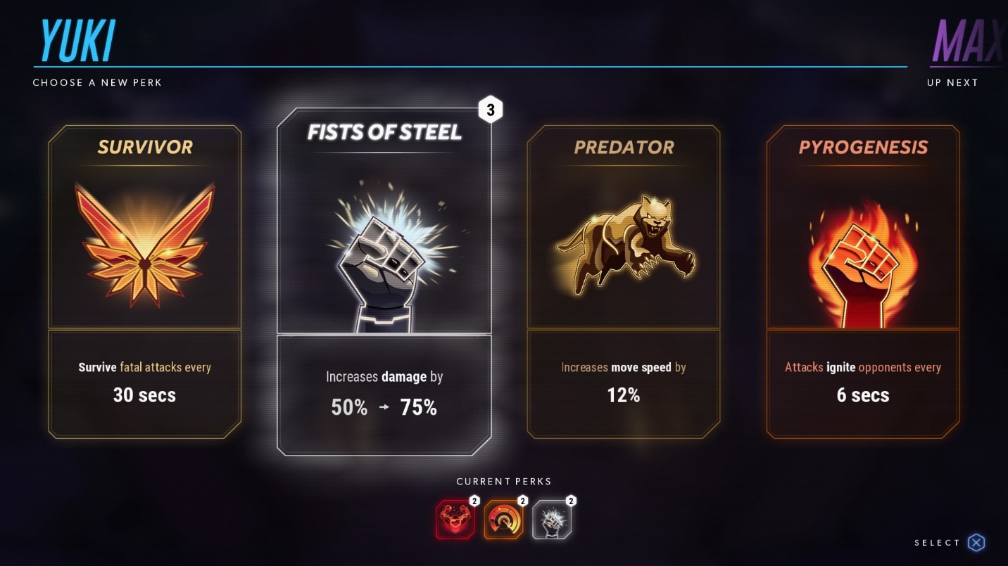 Should you be lucky or have godly fingers to propel your way to the scoreboard, it makes each of those succeeding matches quite a touch harder as its comeback mechanics kick in with its game-changing perk drafting system. The perk system which lets all players take as much as one per round but the catch… the lowest ranked player gets to choose first and the top dog can only take what’s left of it leaving them no choice. So you’re not only choosing what you get but what you don’t want others to obtain as well.