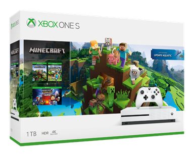If the Xbox One S is more your style, we’ve also got the Xbox One S Minecraft Bundle. Beat the summer heat with the cool new Update Aquatic and explore new ocean biomes, shipwrecks, ruins and more. Infinite worlds and ways to play can be found in this bundle, as well as the option to play with your friends on nearly any other platform thanks to Xbox Live! Join millions of players in the Minecraft community on Xbox, Windows, Nintendo Switch and mobile devices with this new bundle, which comes with the following: