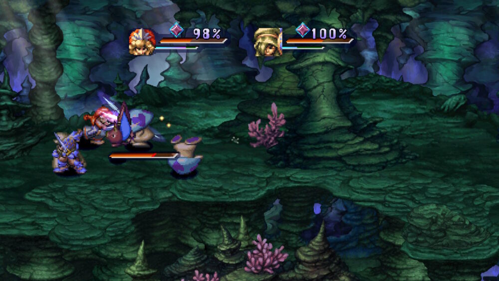 Gameplay in Legend of Mana involves players engaging with enemies in dungeons or other locations on the world map. This triggers an immediate battle sequence where players will string together combos to deal damage to enemies. This isn’t a turn-based JRPG so if you wanted a more action-orientated title, Legend of Mana will definitely appeal to you. Attacks are fairly straightforward and special attacks can be triggered too.