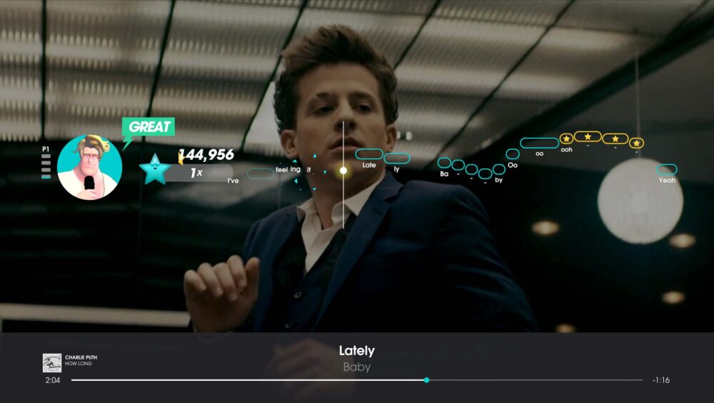 When you load up a song you simply have to try and sing in time and tune with the notes to score points. If you are able to keep your marker inside the notes, you’ll get max points and get a multiplier bonus. While the song plays you will get the music video playing behind it and the notes will flow from right to left, I enjoy this style of singing games as if it was like traditional karaoke you would just have the lyrics on the screen where with Let’s Sing you get a music video as well.