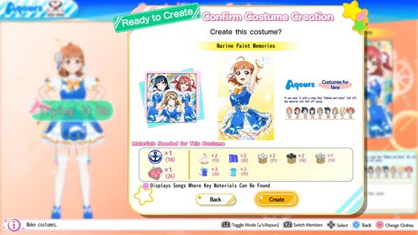 * In some cases, players may need materials that can only be obtained from songs that are purchased as downloadable contents to create costumes.