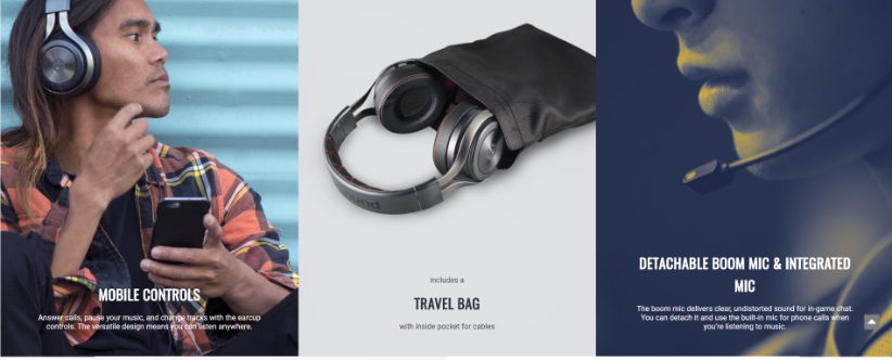 Moving to the back, you will see some instructions on how to use the headphones volume features and mute features. The box also displays some understanding of the headphones themselves and their construction. Checkout the images below for further details: