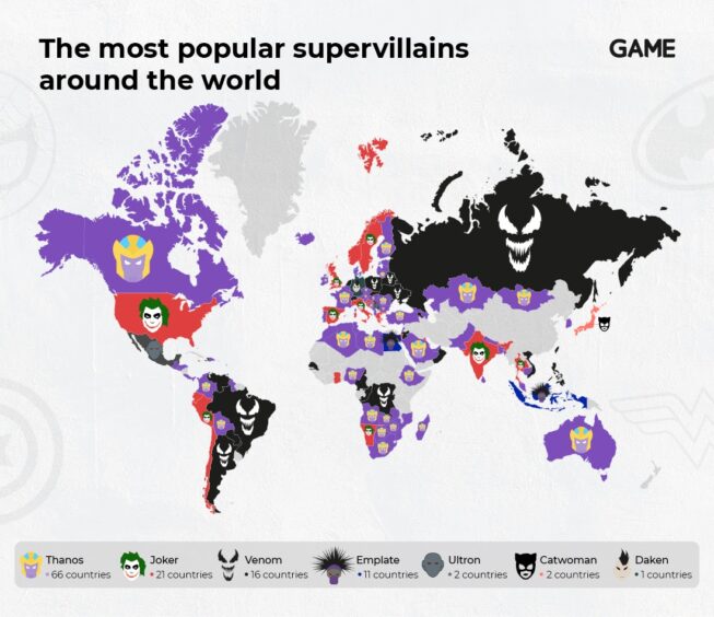 The study also reveals each country’s favourite superhero and supervillains with Spider-man and Batman battling it out across the world.