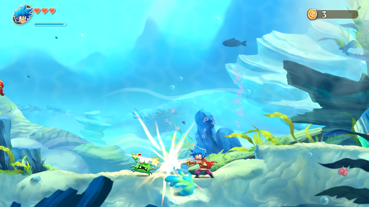 Monster Boy and the Cursed Kingdom’s gameplay is exceptionally good because of the various item effects, enemy types and the added bonus of Jin’s transformations being essential to progressing further in the game. Being able to strap on heavy boots and sink to the bottom of the ocean and then resurface elsewhere and use a fire or lightning spell to get to a hidden chest is something that’s incredibly rewarding. This continues through the game with specific areas requiring your newly acquired magic or transformation skills to get through. Some light RPG elements are also featured with certain characters giving you quests to complete and equipment/item management being necessary at times. The Legend of Zelda games comes to mind in this regard and that’s not a bad thing for a game to emulate.