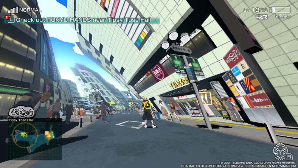 When you arenβt speaking to your crew and advancing the story, youβll be spending a lot of time in the games recreation of Shibuya and in battles. Visually Shibuya is gorgeous. The stylised art style of the characters is also used for the environment design. The game employs fixed camera angles which allows for some gorgeous cinematic shots and object distortion, such as the way buildings bend towards focal points, adding an otherworldly feel to the normal, real world surroundings. Locations are also packed full of pedestrian traffic making the city feel bustling and βlived inβ.