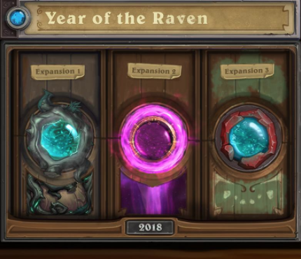- As the first expansion of 2018 launches, we will transition into the Year of the Raven, and the following card sets will become exclusive to Wild: Whispers of the Old Gods, One Night in Karazhan, and Mean Streets of Gadgetzan.