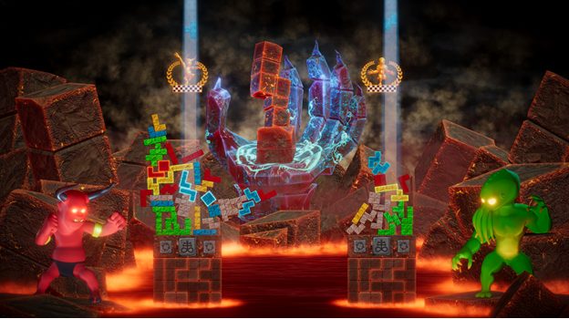 Raising Hell is a fast paced, real-time strategic chaos-party construction versus battler, where the player chooses their ‘hero’ from a range of evil deities and must overcome opponents to determine who is most malicious of them all. Players build temples to their own infernal egos using the souls of the damned by placing coloured blocks, themed to each character. Structures must reach and hold objective points (altars) before their rival in order to win a battle. Adapting to your enemy’s strategy may be key if players want to ensure their victory and be crowned the most evil ruler of all!