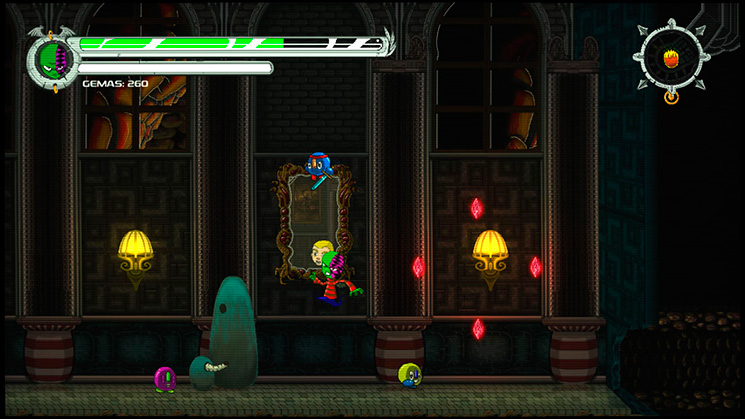 The gameplay itself combines platforming with both melee and ranged combat; as is common in Metroidvania games. You start with a simple jump and punch, but quickly you are provided with a variety of new powers which open things up joyfully. The powers and bonus’ come frequently, with each new area and boss bringing something new to play with. Enemies are varied, with most providing small extra challenges alongside the tricky platforming. The inclusion of Mongos; small, innocent creatures which sit in the most awkward places; ramp up the challenge a little, as you are asked by their guardian to avoid killing them. The guardian is a useful ally, killing enemies for you, but it will also attack you if you accidentally kill a Mongo; leading to moments where you have to choose between a quick enemy kill or a more careful approach. It’s executed incredibly well and it’s really fun to run around collecting gems and navigating Nightmare Boy’s beautifully realised world.