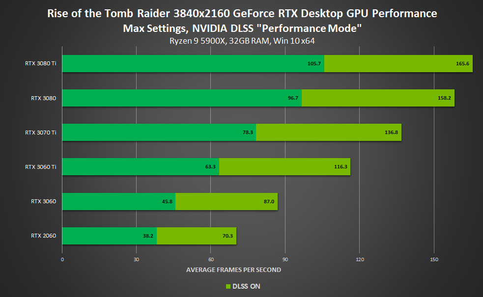 And in Rise of the Tomb Raider, NVIDIA DLSS boosts performance by up to 75%, enabling all GeForce RTX gamers to play at over 60 FPS at 4K, with max settings enabled.