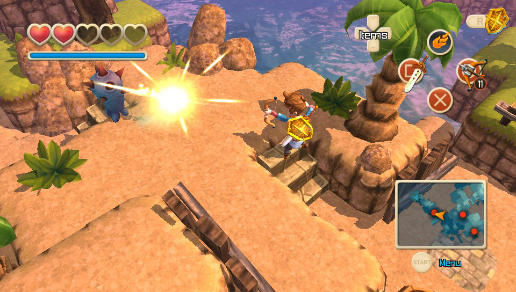 Combat is really simple and has you using a sword and shield, block enemies with the R button and attack with the square button, if you hold square in, it allows for a strong attack. Using triangle will let you use your spells. When using spells you use up your Mana. To replenish this you either have to buy the item from the shop or smash a few pots. Using circle will allow you to use your items, though like mentioned before circle is the compass when sailing too. You are able to dash by pressing cross and move the protagonist using the left analogue stick. The D-pad is used for scrolling through your spells and items so that you’re not entering a menu while in combat to equip certain things, this allows for very smooth gameplay as I felt like I wasn’t being pulled out of the game to go into the menu.