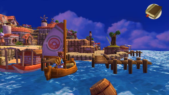 The game has you revisit islands more than once because as you progress through the story you unlock different spells and items that are needed to do certain puzzle and collect treasure chests. You unlock things like the Bow and Arrow, Trencher Boots, Force spell and Fire spell to name a few. These all aid you in collecting the three emblems, the emblems of earth, sky and ocean. The three emblems are kept on separate islands and are looked after by the different races in the game. You have the Owrus who are bird people and the Gillfolk who are fish people… again The Legend of Zelda, but anyway you end up helping them with their problems and finding the emblems.