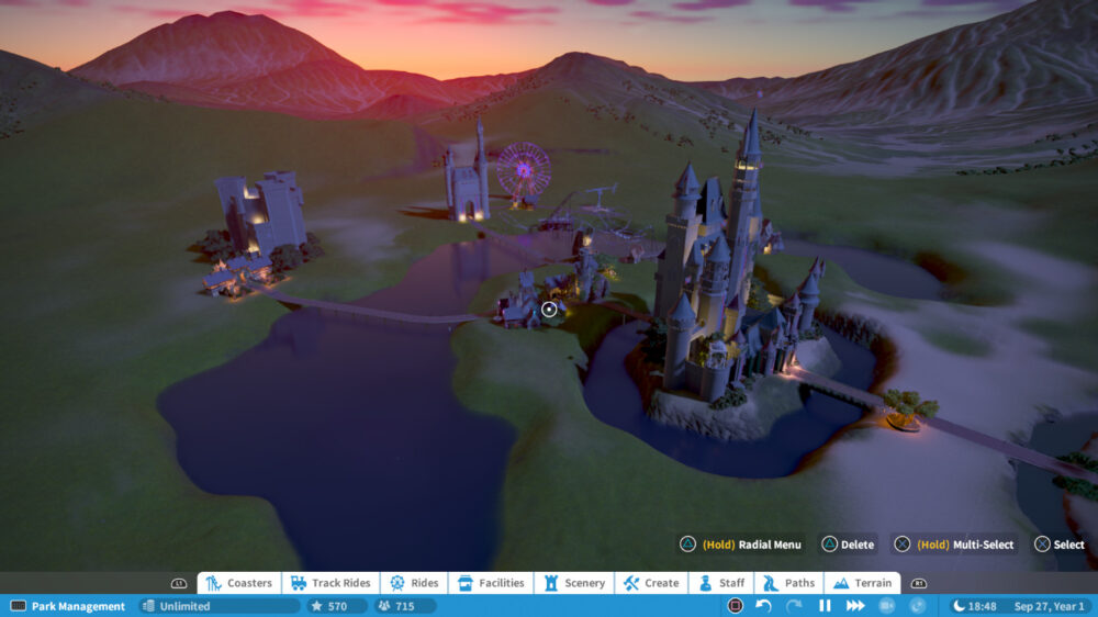 Planet Coaster: Console Edition is what I would consider as one of the more interesting games to come out for home consoles. Not because it redefines the management simulation genre by any means but because it still upholds its major features without any sort of noticeable compromise. One of the biggest things I love with the game is its massive selection of constructs and visual flair while also being able to deliver a compact and straightforward control scheme to keep it from falling apart. And it does it in two ways… like literally.