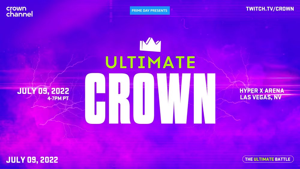 On July 9 starting at 7 p.m. EDT, Prime members can tune in globally to the gaming event of the summer—Ultimate Crown—on Twitch.tv/Crown and Prime Video. An all-star lineup of gamers and streamers will battle live from Las Vegas at the HyperX Arena. Prime members will have a chance to attend in person or participate in live chats for a chance to win exclusive giveaways and gifted subs. More details regarding Ultimate Crown will be shared soon. Follow Crown on Twitter, Instagram, and Twitch for the latest Crown Channel updates.