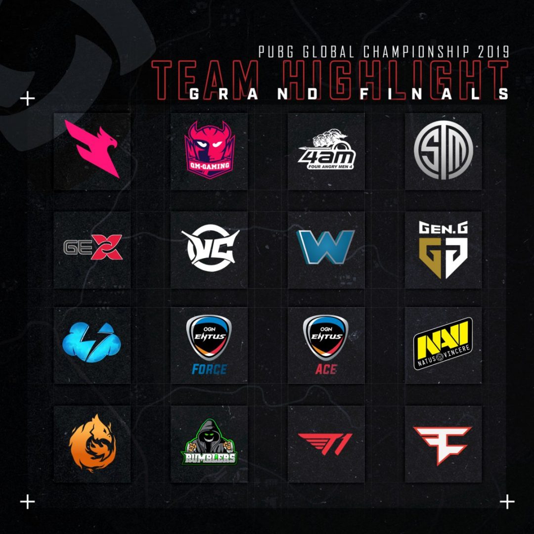 The lineup is now set for this weekend’s climactic Grand Finals, with the teams below ready to parachute into the final drop point of the 2019 season—the Oakland Arena. The Grand Finals will start at 5:00 p.m. PT each day from Nov. 23–24. Fans can check out https://watch.pubgesports.com/ to watch it all live.