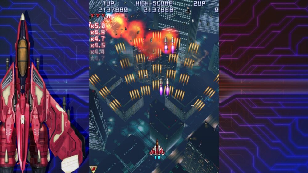 Being a top down arcade shoot ‘em up from yesteryear, Raiden IV x MIKADO remix visually enhances the original arcade title and brings some new features to the table. There’s an Overkill mode which includes a new scoring system as well as an Additional mode that features 2 new levels to get through.