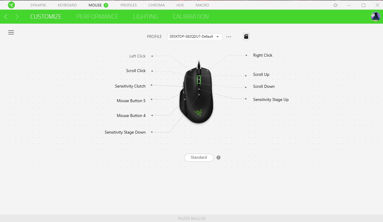The Basilisk has a number of buttons, left and right, scroll wheel, two just above the scroll wheel, and two on the left-hand side and of course this new clutch. Every button can be pre-configured to your liking within Razer Synapse. Would you want to do any of this, well, yes, if you are a true gamer and love Razer mice, then you will most likely be making this mouse, your mouse.