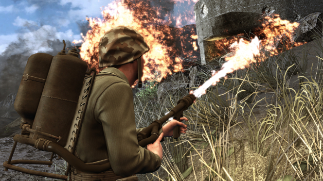 A feature which the developers are quite proud of, and really does come across in the gameplay itself, is the asymmetrical gameplay which they have incorporated. This feature has made this game stand out from others of its kind by not making both sides entirely even in every way. In this case the US military have more advanced and effective weaponry than the Japanese army, while the tactical advantages and style of weapons that the Japanese use can be of use to them in other ways aside from straight and simple shooting, for example shelling with mortars or sharp and swift kills with swords. The idea here has been to reflect the reality of both war and these battles in particular; that both sides do not carry the same weapons and are not equally matched in every way, but rather have different advantages. This really set Rising Storm aside from similar games such as the Call of Duty series which gives players the same equipment to fight with no matter what force they fight for. This is also a nice touch as it gives the player the opportunity to pick their side based on what equipment or tactics they feel best suits them when it comes down to the fight.
