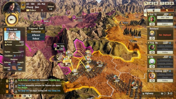 By that description, this could be Civilisation or even Total War, but while those games have a satisfying mix of systems and action, RTK XIV fails to make this loop interesting and exciting. The biggest problem is with the conquering part of the game. There is hardly any strategy in the grand strategy game. You simply choose a leader for your army and send them off to conquer the neighbouring land. You can choose the formation they will march in, which is important as that formation will determine how much territory they will conquer as they march around. And that is how easy it is to conquer your neighbours just send your army out and as they cross each hex, they will conquer it. You will run into opposing armies, because who is just going to let you take over their land, but unlike a Total War game you do not get to control your armies they will clash automatically with no intervention from you and it simply boils down to making sure your armies are stronger than theirs – there is no strategy to the battles. What you do get is a battle between the head of your army and the opposing army, but all in CGI and all automated. It is fun to watch in the beginning but does get repetitive.