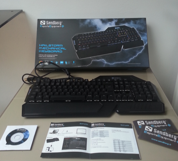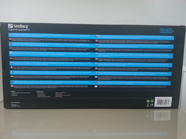 The sides of the box are all like reminding us that the company is called Sandberg and the keyboard is indeed the hailstorm mechanical keyboard, for all of us, who like to quadruple check sh*t, and at the backside we have some very nice flavor text, telling us how badass this keyboard is in 24 languages. To be real, I was surprised that there is Bulgarian as well … like, positively surprised. Because not a lot of products go to that extend. Now, besides that we have a list of what is contained in the box and some physical and technical specifications of the keyboard itself. Allow me to quote.