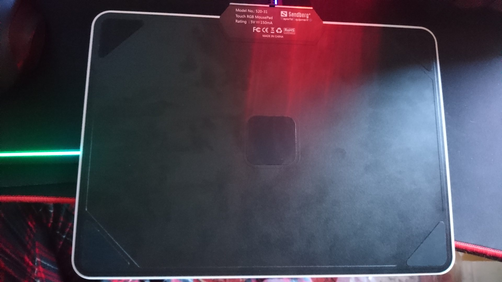 Lighting strikes the mat, powered and ready to go, is what I get from the design, with a note to the eSports Equipment on the front of the packaging. You can tell right away without reading anything that this is an RGB mousepad, but looking at one of the corners it is also a touch RGB mousepad. When its come to tech specs Sandberg wish to express are the following: