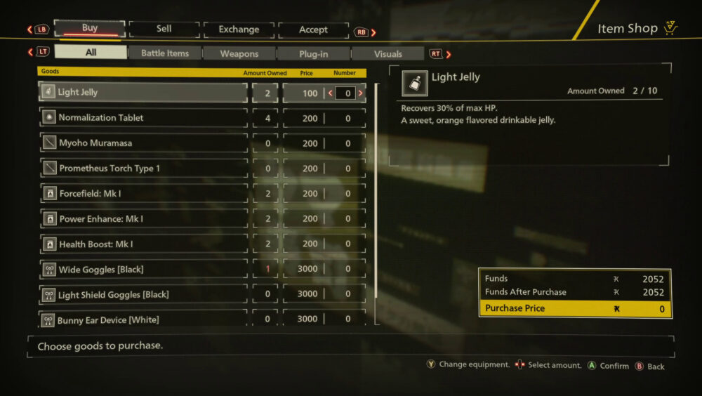 Do not spend your hard-earned money or sell items that you’ve found in your missions at the shop. It is best to use the Exchange feature of the shop once it is available since you can get all the items you want there without spending anything. Just exchange your items for better ones instead.