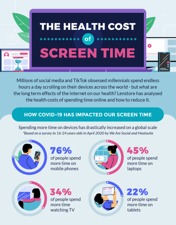 Find the full research conducted by Lenstore here – https://www.lenstore.co.uk/research/health-cost-of-screen-time/