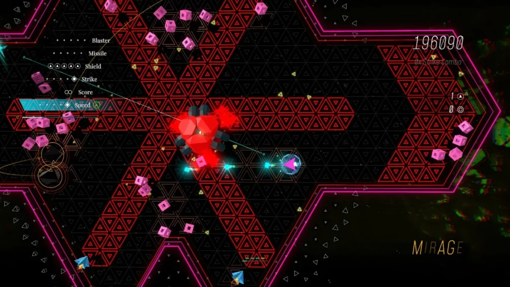 Players in Sektori will take on the role of a geometric-shaped ship and begin blasting away at enemies in an ever-changing and evolving battlefield. No two runs in Sektori will ever be the same because of the way the game plays out. You can collect upgrades, and these can be held onto until you have enough to trigger your desired effect. For example, you can collect upgrades and hold on to them until you reach the “Strike” level and then choose to upgrade that aspect of your ship.