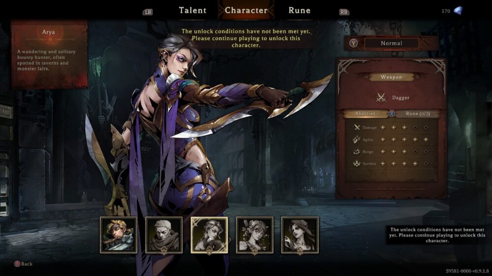Upon dying, you’ll retain your gems and talent points and can unlock perks which will assist you in your next run. There’s additional characters to unlock and each character plays completely differently to each other. For example Arthur is slower than Arya, a dagger user. However, there is a perk that allows other characters weapons to drop in levels and you can use them as a secondary attack which allows for some interesting combinations.