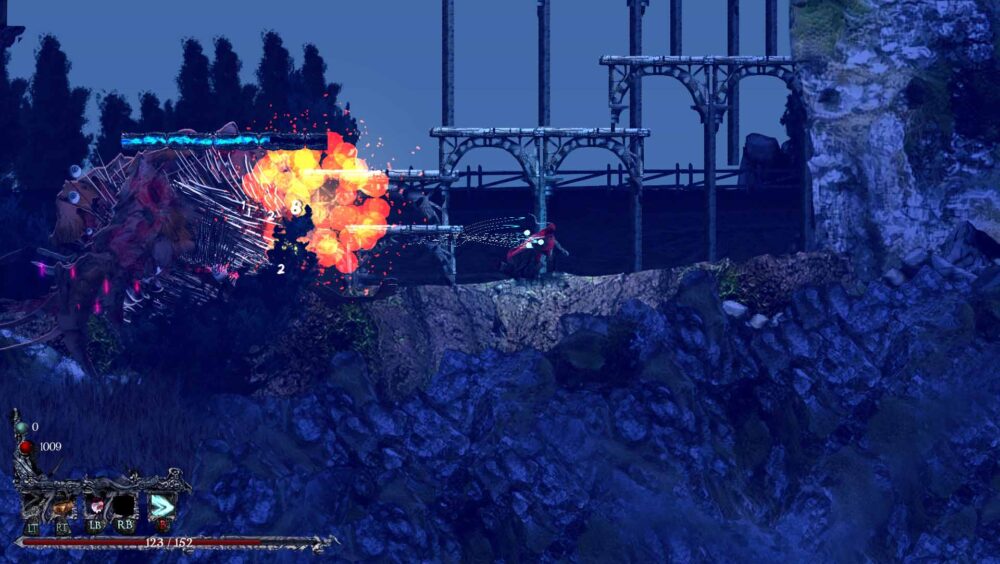 Outside of specific areas such as the opening Cathedral, the game levels are also procedurally generated. The game’s art style is certainly unique, creating a layered effect of pieces put together haphazardly. It certainly fits in with the theme of madness and a world gone wrong and full of pustulent flesh and Geiger-esque buildings.