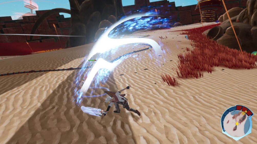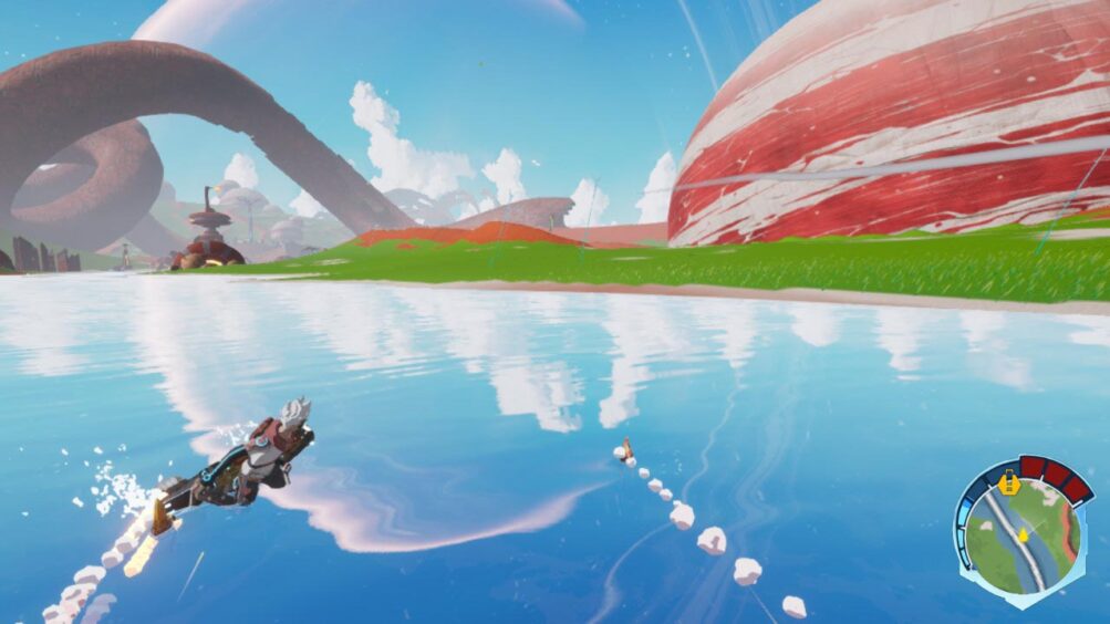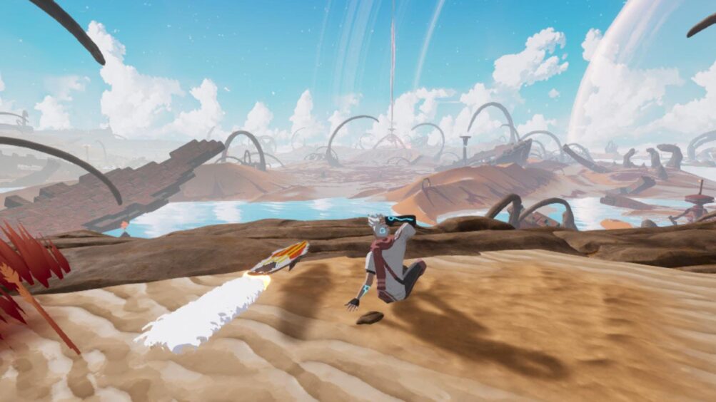 The Breath of The Wild comparison is highly apt, as I’ve never played a game that felt as much like Breath of The Wild until I started racing around Star Overdrives dune heavy world. The visuals will certainly be the first thing you notice as, while the aesthetic is SF, the cel-shaded art style is as Breath of The Wild as you’re going to get.