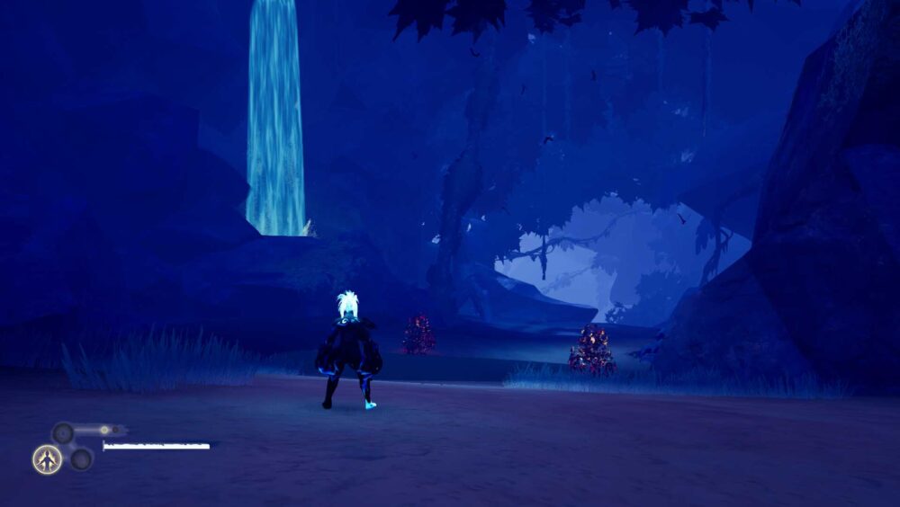 Strayed Lights alien planet is simplistically grand. The stylised art and environment design wonβt win any awards for polygon-pushing visuals. Still, there are often enough artistically designed vistas and remnants of a destroyed culture to gaze at that it makes the game’s photo mode a joy to use. Dripping caverns, desert-like areas, thriving jungles and shattered towers all make up the world that youβre going to explore.