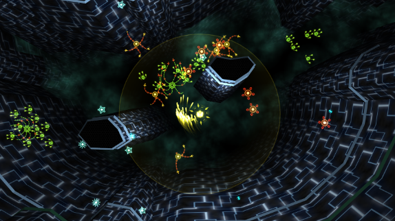 Swarm Universe is a new top-down shooter, developed by Dedication Games, as a spiritual successor their 2010 game Swarm Arena. In a style reminiscent of Asteroids, Swarm Universe has you control an orb whose main form of attack and defence is several small drones. Motion and movement are at the forefront of gameplay, relying on the tracking of your drones to follow your movement before being released at your enemies or blocking other drones.
