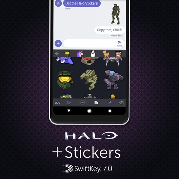 Launching today, the Stickers will make it easy to bring your love of Halo from your Xbox to your phone, giving you a new way to engage with your friends and opponents right from your device. In the pack you’ll find eight Stickers totally exclusive to SwiftKey for Android users with a fun mix of animated and non-animated images to share with contacts.