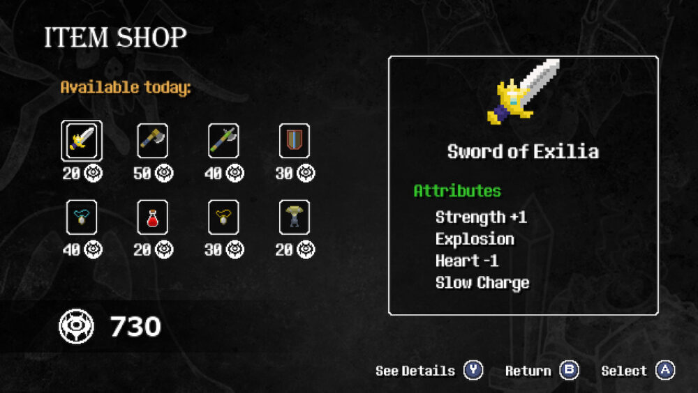 Build and play custom dungeon floors! Create a floor layout, choose the enemies you want to appear and select the boss guarding the exit. You can even choose what items will appear in chests and their properties, so you can set yourself a unique challenge or share a fiendish floor with a friend. Share your creations via a simple text code!