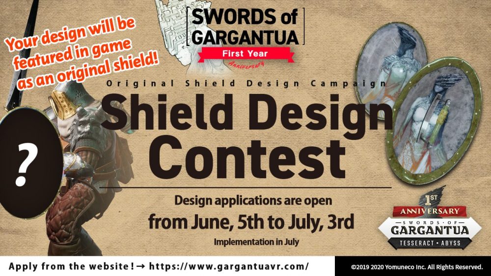 SWORDS of GARGANTUA will host a special shield design competition where one lucky winner’s design will be remade in-game for everyone to use. The competition will run from June 5th through July 3rd. More information about rules can be found on the official Discord event channel: https://discord.gg/UcfNVU3