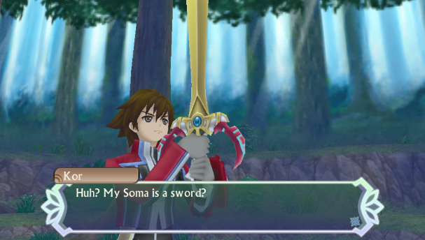 Tales of Hearts R, by Bandai Namco, is one of these great titles. Originally called Tales of Hearts and on the Nintendo DS, this is a new and improved version of that game, and one can imagine that the R stands for Remastered. In the opening cinematic we see a brother and a sister running from an evil witch. The two then, being with their backs to the wall figuratively and to a cliff literally, jump off into the water. The game then turns to a young man called Kor Meteor, who we see sparring with his grandfather who awards him a Soma, a powerful weapon which changes shape based on the Spiria of the owner. The Spiria is the embodiment of heart and soul of all Soma users, called Somatics, basically your inner power. Walking on the beach he finds the girl, called Kohaku Hearts, who is searching for Kor’s grandfather. The two embark on a journey to the town where Sydan is healing a victim of despir, a sort of disease which affects a person’s Spiria. On their way they meet with Kohaku’s brother, Hisui, and the party of three keep on their adventure to seek Sydan.