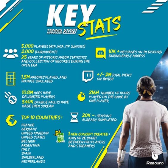 After several months in Early Access and five major patches, the game has evolved greatly, achieving some impressive milestones. To date, Tennis Manager has reached its highest user score on Steam with +85% positive reviews, thousands of players, and millions of matches played (aces and double faults alike!);