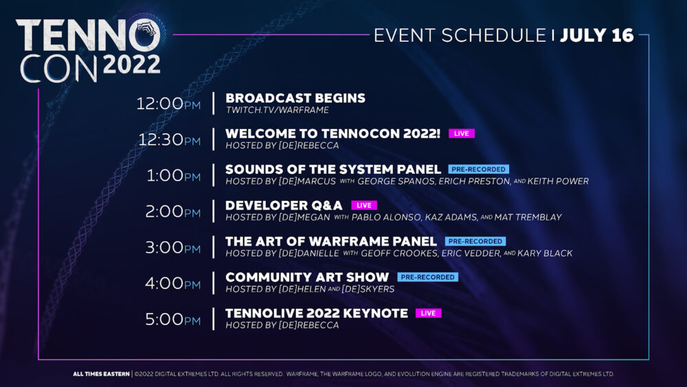 In a new TennoCon trailer, Digital Extremes’ Rebecca Ford, Director of Community and Live Operations and voice of Warframe’s ‘The Lotus’, sends a heartwarming message to Warframe players everywhere and teases a new immersive in-game relay experience for TennoCon before unveiling the schedule of activities for the day: