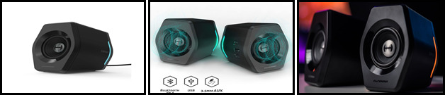 Gaming Bluetooth speakers that marries customizable studio quality sound and a modern look that compliments any desk