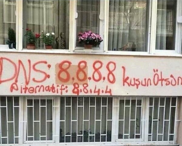 Graffiti in Istanbul encouraging the use of Google Public DNS as an anti-censorship tactic during the government’s 2014 crackdown on Twitter and YouTube.