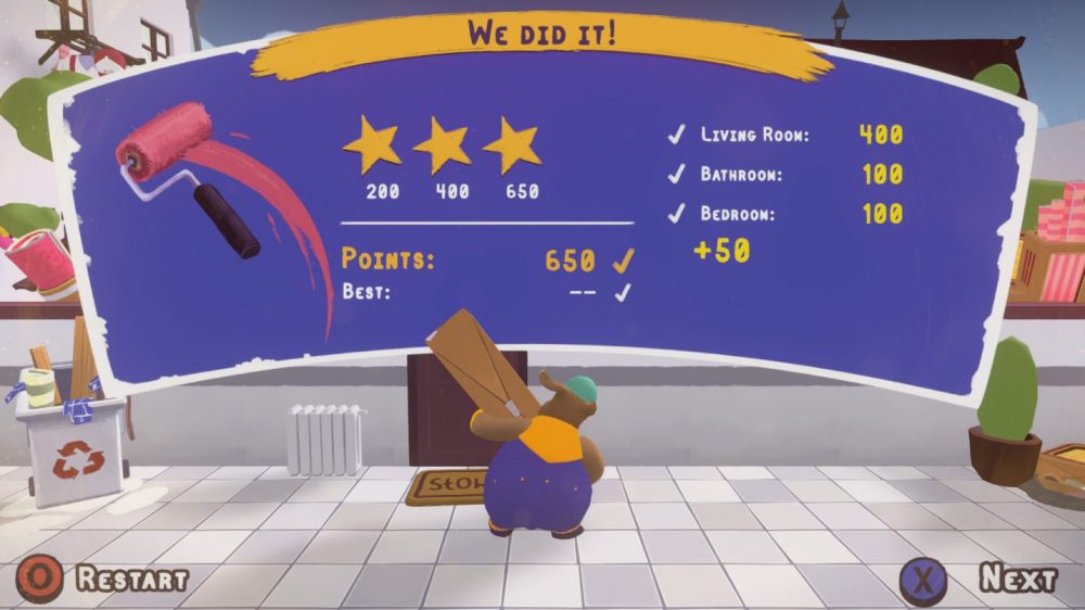 Although its deepest problems go by completely ignoring the most basic of tutorials and hand-holding. Often times, you’re in need to experiment your way around certain levels like using an empty bucket to throw in the trash rather than running all the way down to the trash bin for each patch of wallpaper that needs to be torn down. Or having the perfect angle and position to throw stuff over walls which theoretically should never be a thing because of ceilings in a multi-floor apartment complex. Controls are rather clunky at times especially when near other interactable objects. When you’re holding certain stuff like carpet or a bucket of paint while near another, your character would often nod in the disagreement like refusing to drop or throw its paraphernalia to carry on with your work.