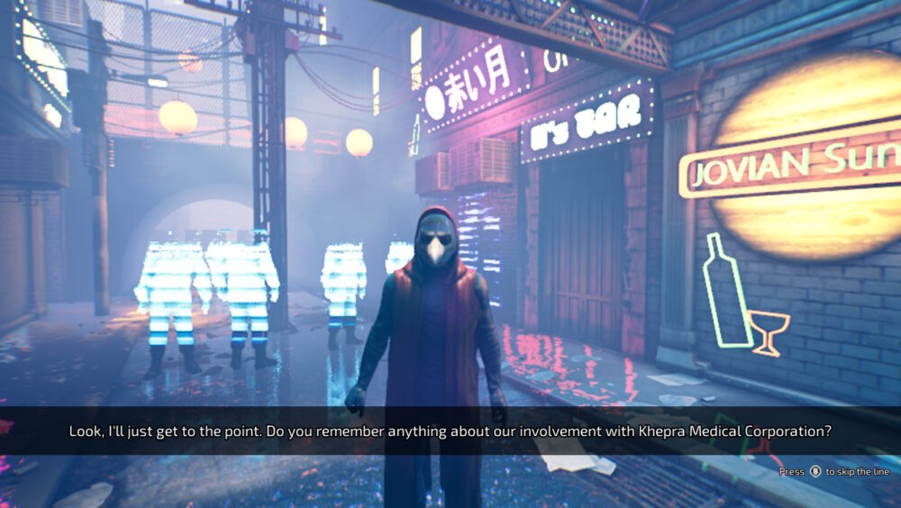 The bulk of your playtime as Carter will be exploring locations for clues and solving puzzles, most of which you will do from Carter’s apartment virtually. With the help of an implant, Phi, Carter can analyse his surroundings, looking for clues and anomalies around him while hacking computer systems to find information. The Cyberpunk aesthetic for gameplay is rooted firmly in hacking and solving puzzles through Phi and your trusty journal.