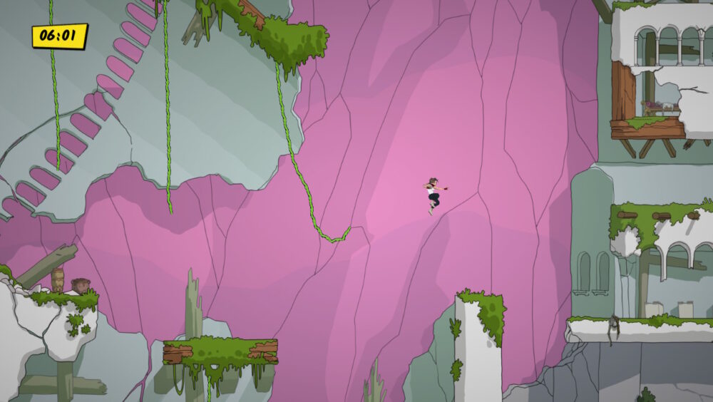 While there are enemies present, the game has no combat. Instead, they’re treated as more obstacles to be overcome. When shot at, their bullets move rather slowly, the developer’s way of showing you exactly what it is that this game is really about. But take a long tumble or get hurt and instead of dying, you get a short scene of Marie picking herself up minus some precious seconds from the clock.