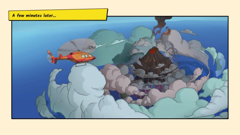 This approach is both welcome and overwhelming, as the desire to explore the ruins of Thera can be met almost immediately and overwhelming because once you do, you begin to get a true idea of the scope of this game. Your initial exploration is cut rudely short by the volcanic activity that raised Thera in the first place. A sedate exploration trip for treasure and fortune is suddenly turned into a save the world journey as we’re born witness to the destruction of the island. . . and a not insignificant portion of the planet. And suddenly you’re waking up on the floor of your holiday apartment just after the initial volcanic uprising and the game throws its major gameplay twist at you, the dreaded time loop.