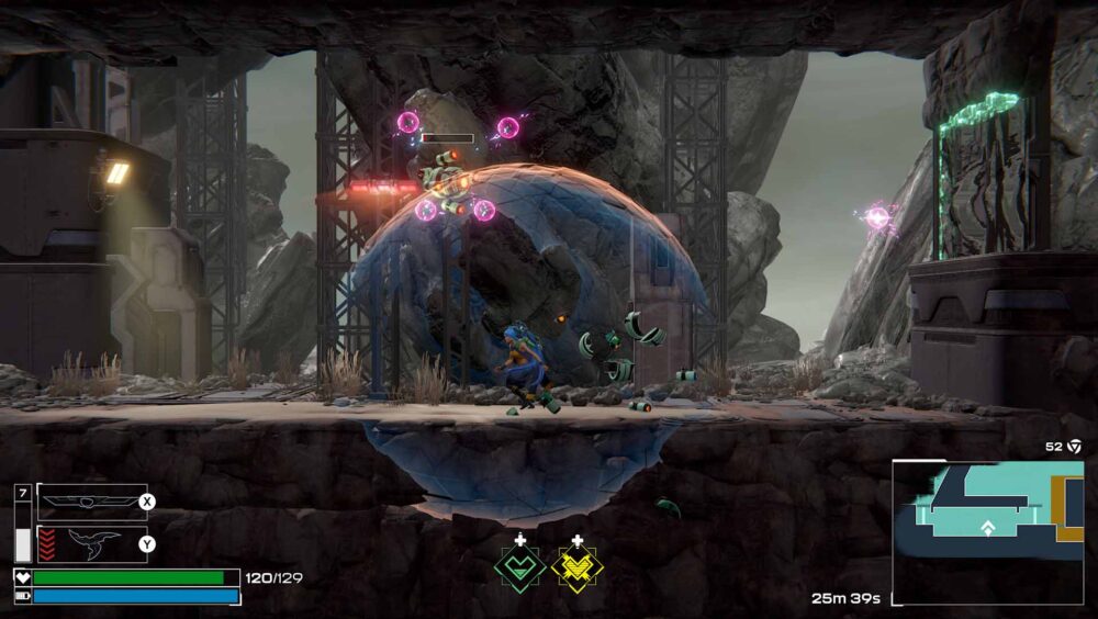 Trinity Fusion also works the character’s abilities into boss fights, not just environment navigation. One boss had me having to use the grapple arm to stay out of the way of its attacks. If I didn’t it was a quick journey to pain town and a painfully fiery death in the lava below.