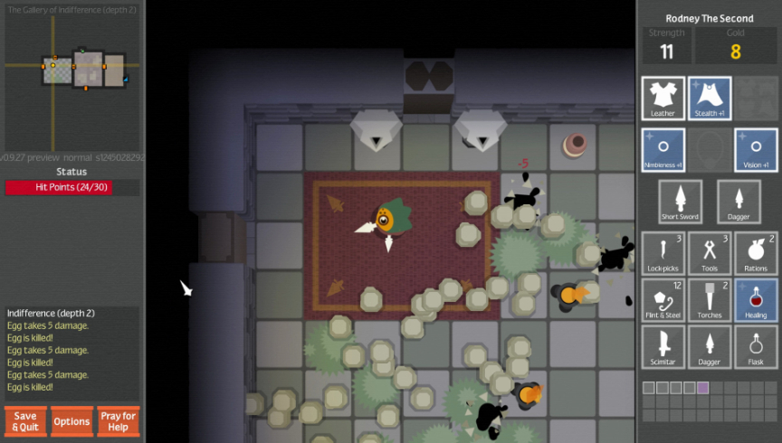 There are Daily and Weekly dungeons that each have their own leader boards, adding some competitive feel to the game. Playing through the first released ones they don’t feel vastly different then the random generated ones from the story mode. Their designs are somewhat more interesting, with more traps scattered around, requiring you to use scrolls for teleportation or descending, they also tell you their seed if you liked a particular one.