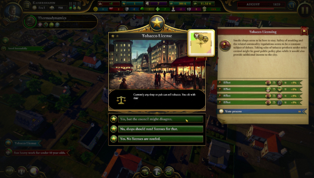 There are times where the frustratingly accurate political simulator within Urban Empire decides to get a bit silly; usually when the money starts to run out. Parties that previously voted against a 20% tax will suddenly approve a 95% one, and at that point things start to get a bit unbelievable. The game is a little edgy at times too, for example the struggle of decriminalising homosexual relationships. Playing in the modern-day world, the fact that all parties can be against this idea feels a little uncomfortable, even if for the period of the game it might be accurate. It is the kind of feature that might have been more suitably left out of the final cut.