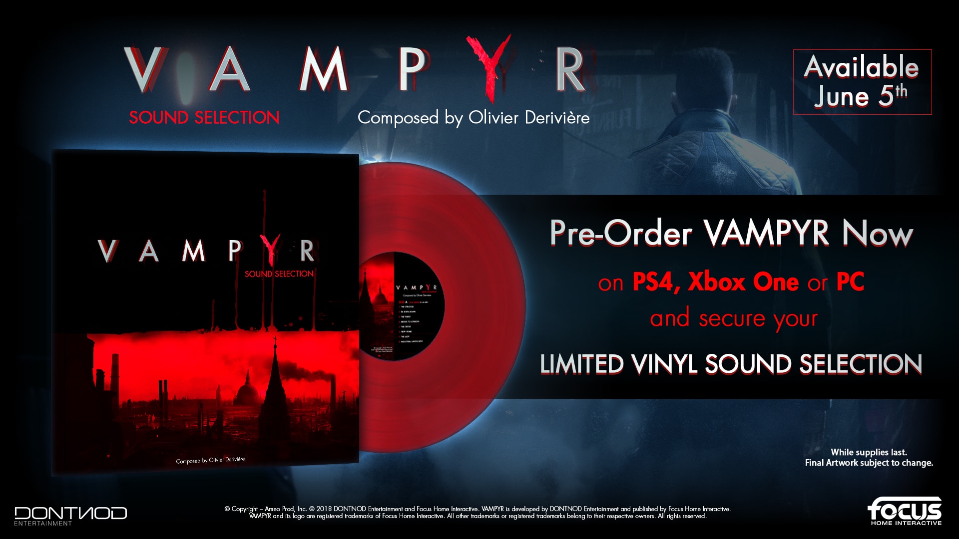 Are you one of the gamers looking forward to DONTNOD Entertainment’s upcoming action-RPG Vampyr? well selected retailers have received some limited edition vinyl featuring a selection of Vampyr’s soundtrack, composed by multi-award winner and BAFTA nominee Olivier Derivière.